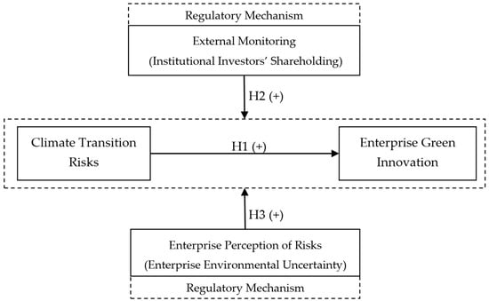Furthermore, does the climate risk perception arising from environmental uncertainty either dampen managerial responsiveness to transition risks or, conversely, heighten their urgency to pursue innovative breakthroughs? Some researchers constructed a synthesized Chinese-context climate risk perception index to analyze the relationship between climate risk perception and green innovation [8], or ESG performance [9]. Other researchers employed difference-in-differences (DID) analysis with the Paris Agreement as a policy shock to examine enterprise risk perception [10]. Therefore, by investigating institutional investors’ shareholding and climate risk perception caused by environmental uncertainty, those two regulatory mechanisms can provide deeper insights into the transmission pathways through which climate risks influence enterprise micro-level behaviors. The existing literature has not offered a definitive answer to these questions.