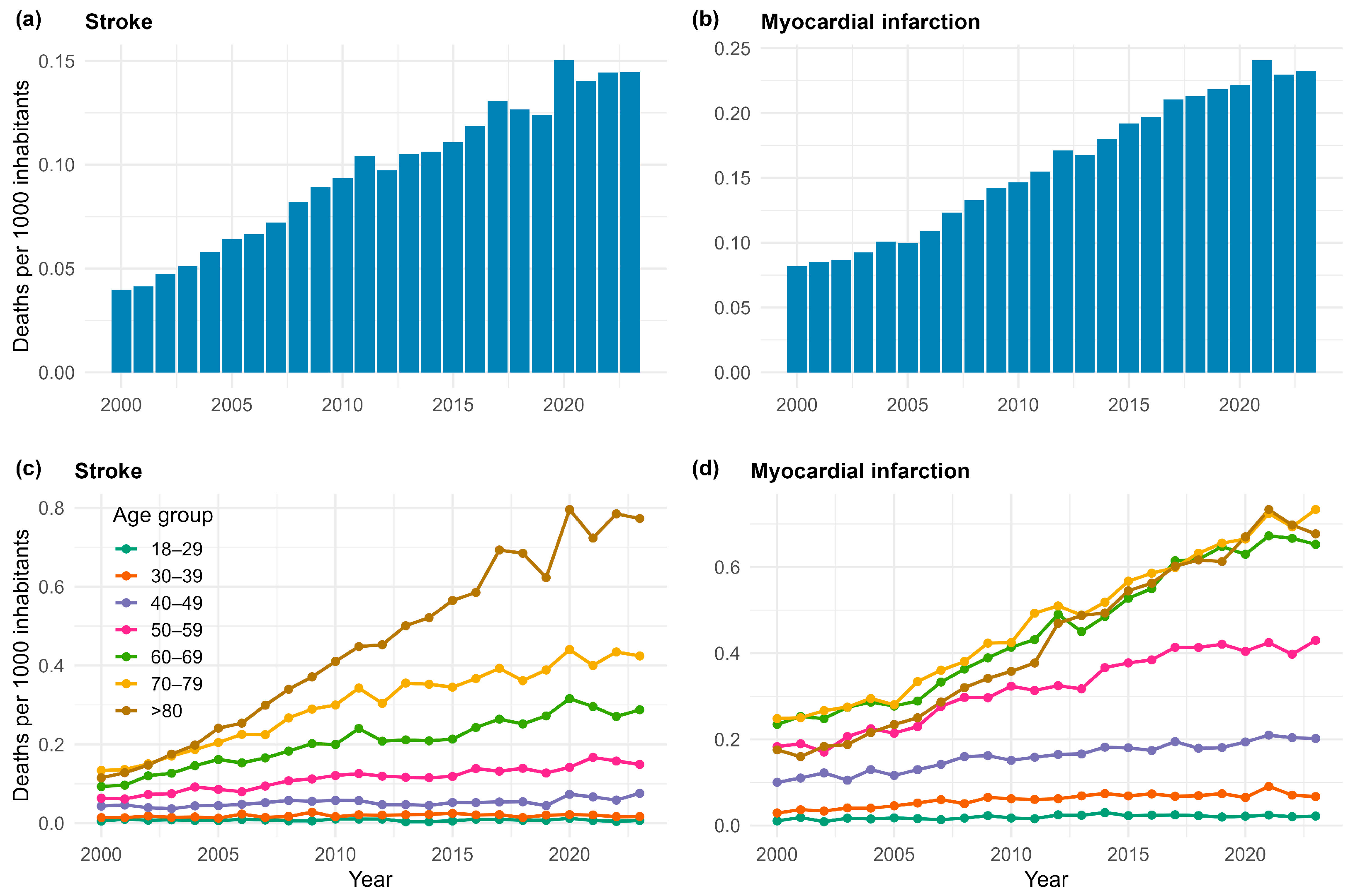 Monteiro, M.F.S.; Oliveira-Machado, T.T.; Roniel, C.; Costa-Guimarães, G.G.P.; Oliveira-Machado, E.A.; Simeone, D.; Oliveira-Filho, A.B. First Evidence into the Association of Warming with Stroke and Myocardial Infarction Mortality in the Brazilian Amazon. Climate 2026, 14, 6. https://doi.org/10.3390/cli14010006
