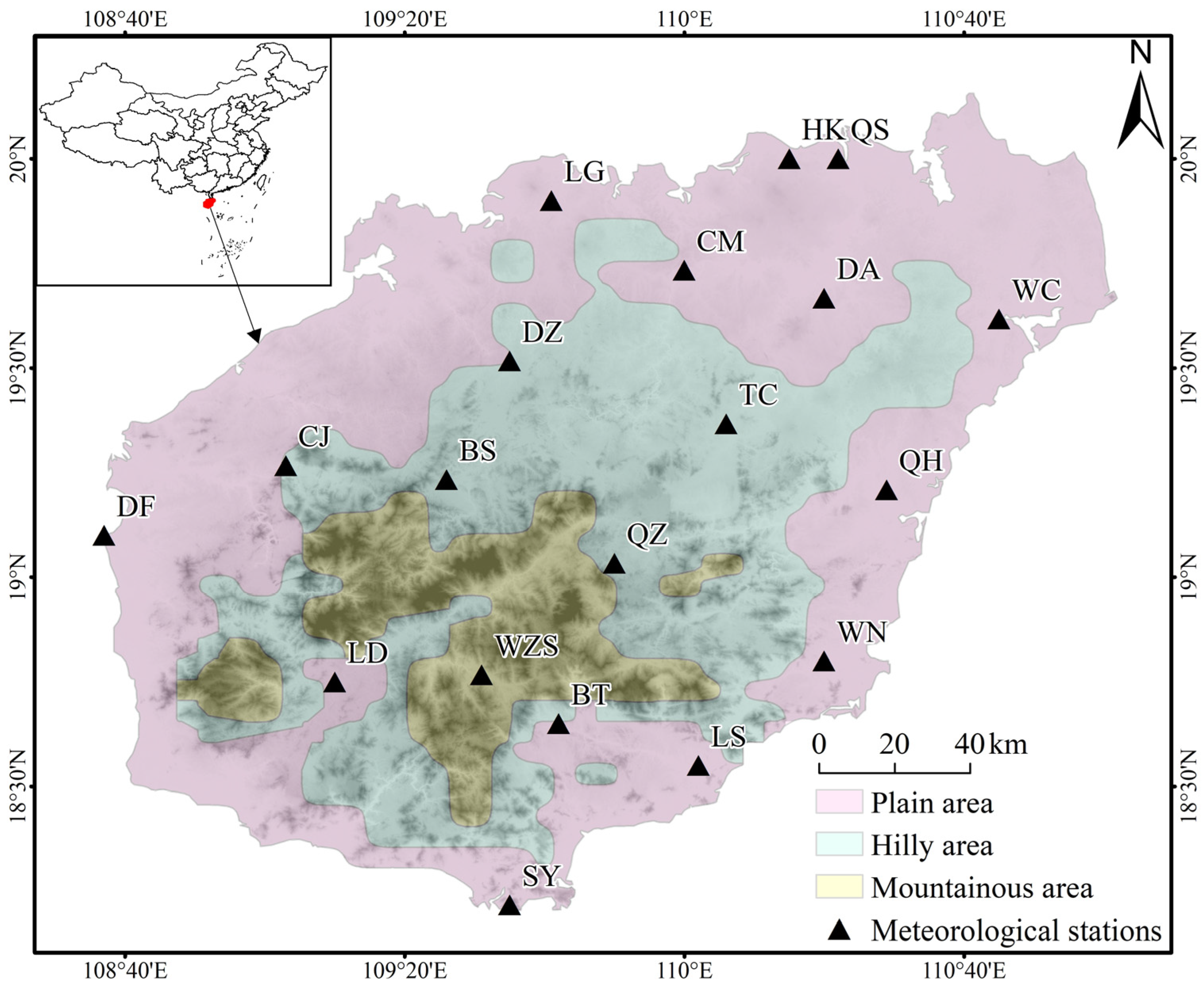 | Wuzhishan | 0.73 *** | 0.96 *** | 0.99 *** | 0.96 *** | 0.80 | 1.00 | 0.78 | 1.14 | 0.63 | 0.90 | 0.61 | 1.31 |