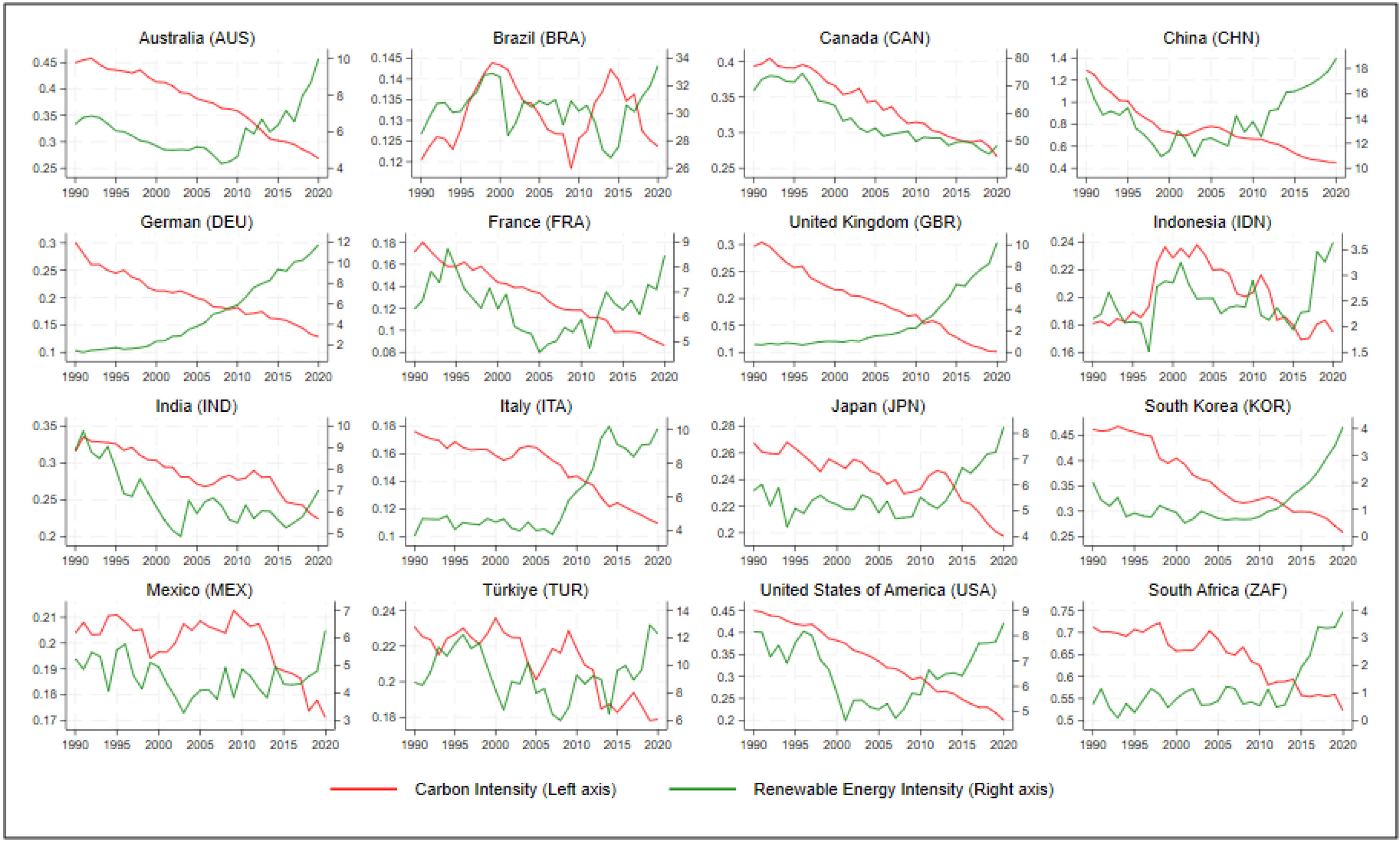 4.2. Estimation Results on Renewable Energy Intensity (REI)