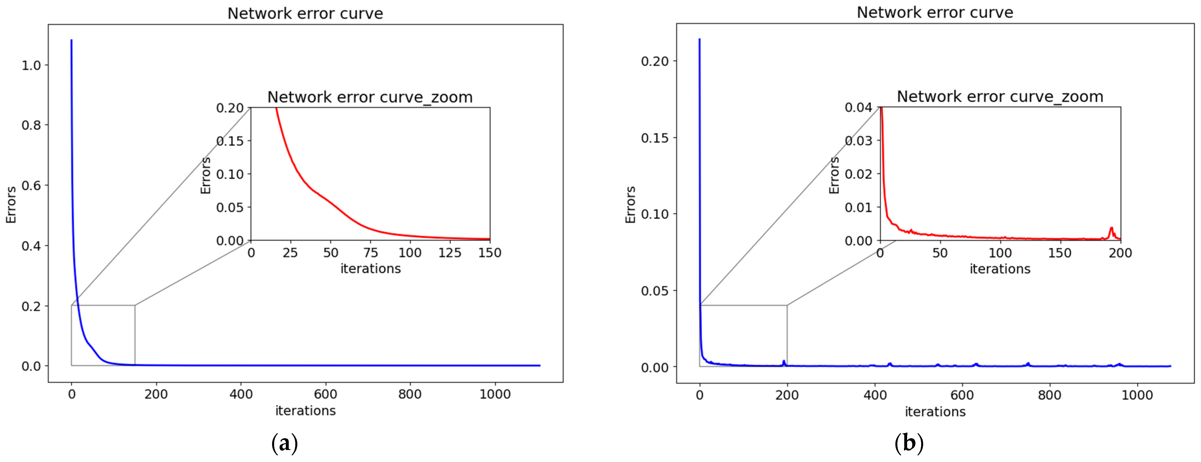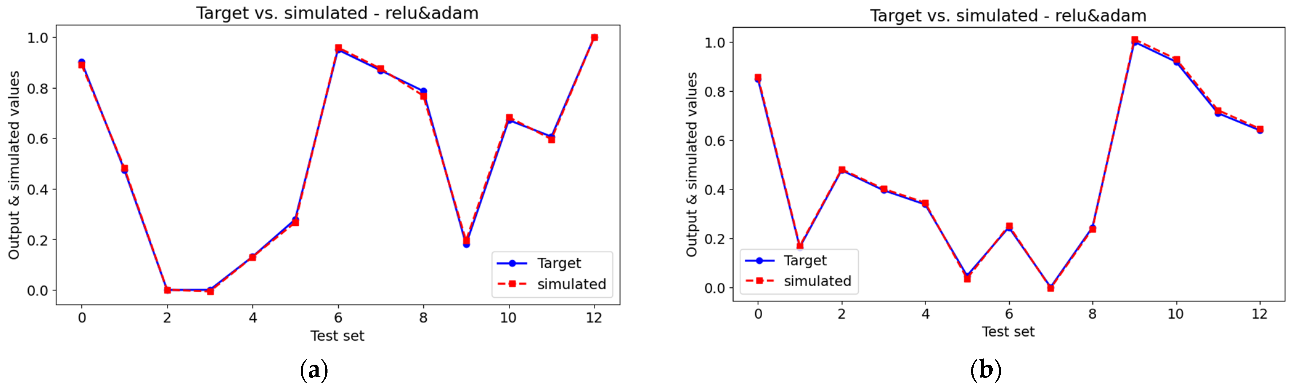 Table 6 presents training and testing errors for both datasets, confirming the robustness of the ANN models. The mean absolute error function represents the average of the absolute differences between the actual and predicted values. The mean squared error function represents the average of the squared differences between actual and predicted values.