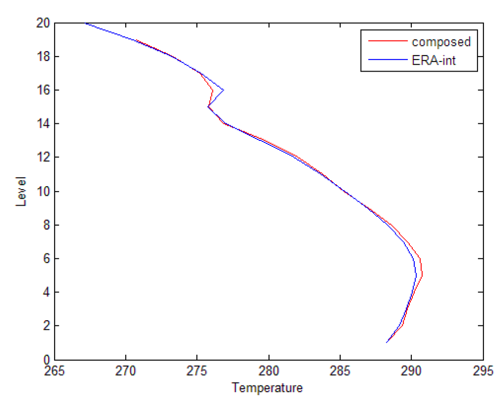 Although the CMIP5 archives provide six-hourly vertical profiles, it should be noted that we cannot simply and solely use the six-hourly profiles as external driving fields for the UrbClim model. Indeed, the six-hourly frequency is far from sufficient, as UrbClim requires a forcing with a well-resolved diurnal cycle. This is particularly important in the context of urban climate modelling, which attaches much importance to the daily minimum and maximum temperatures, which clearly cannot be properly contained in data available at six-hourly intervals only. Even the three-hourly interval we aim for is perhaps a bit limited, but no finer temporal resolution is available within CMIP5 (at least not for a sizeable ensemble of GCM results). From our experience with the ECMWF’s three-hourly forcing frequency, we know at least that UrbClim results obtained with this forcing frequency compare favorably with observations. One of the challenges is therefore to reconstruct the vertical profiles of the required quantities on a three-hourly time frequency, based on the six-hourly information available in the CMIP5 archives.