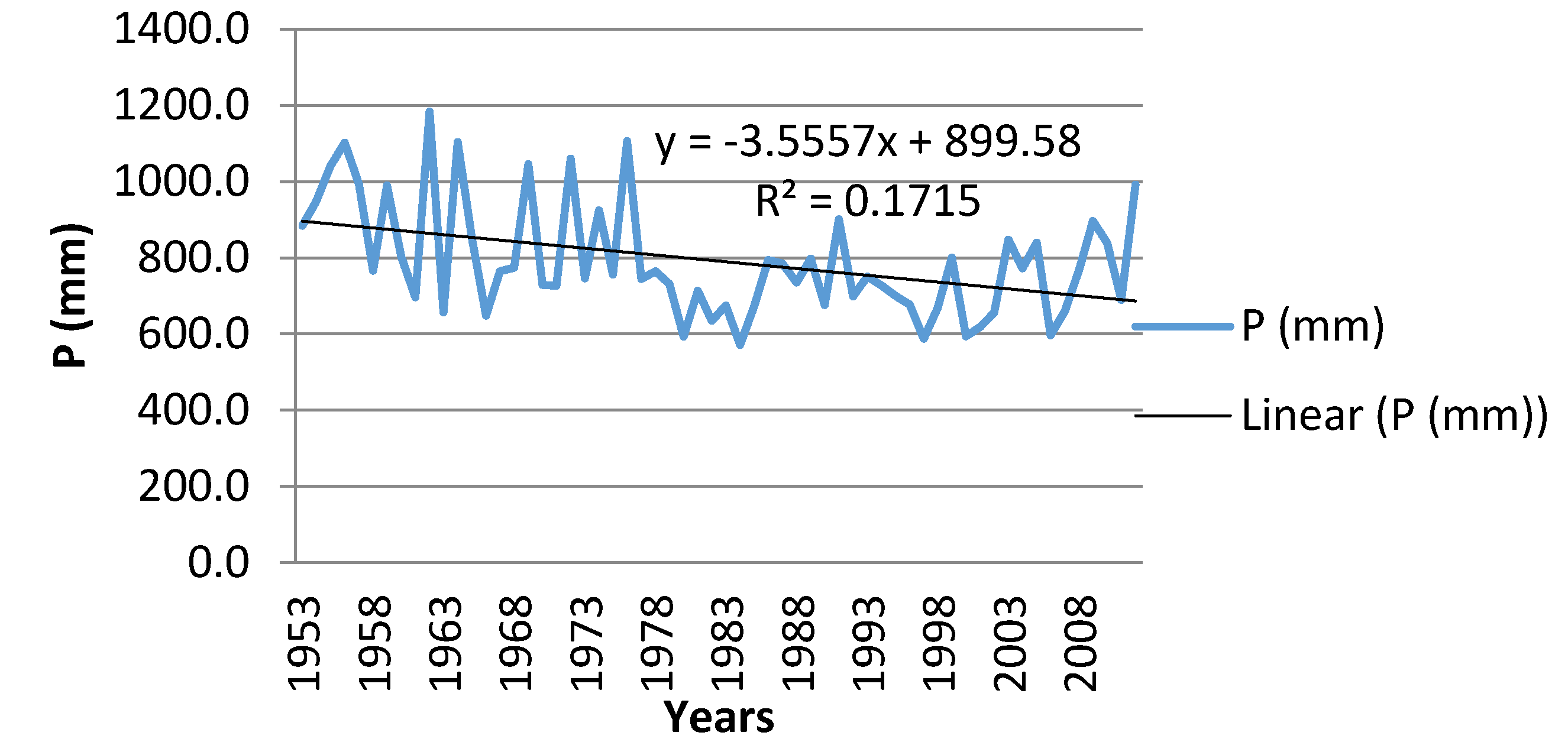 Figure A1. Rainfall trends during 1953–2012 at Ouagadougou.