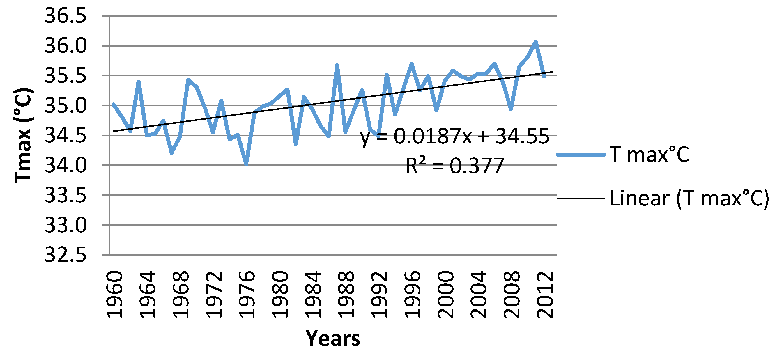 Figure A3. Maximum temperature trends during 1960–2012 at Ouagadougou.