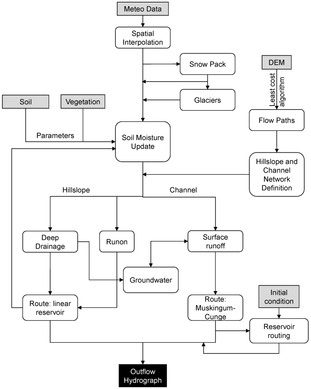 - Ravazzani, G. MOSAICO, a library for raster based hydrological applications. Comput. Geosci. 2013, 51, 1–6. [Google Scholar] [CrossRef]