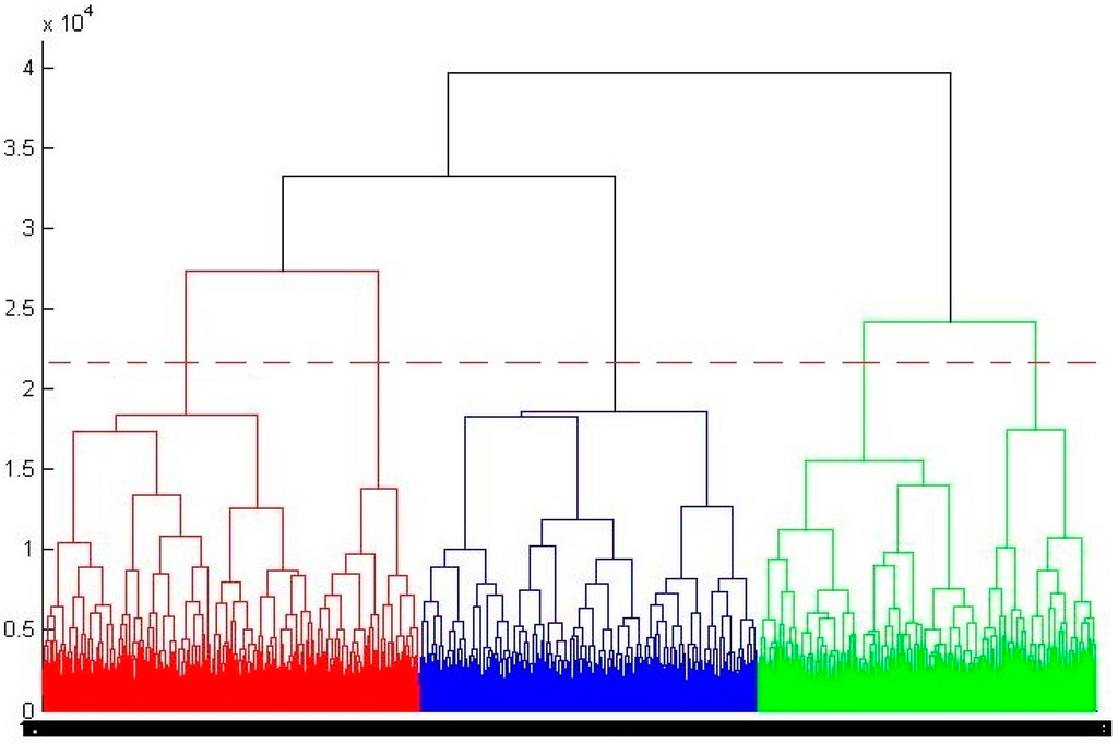 After identifying atmosphere thickness, cluster analysis was utilized to come up with the thickness pattern of Iran’s frosts. In the next step, cluster analysis was conducted to categorize the thickness pattern data and identify the representative days. Cluster analysis is a data analysis procedure through which data are classified into groups according to predefined features. This procedure is used to reduce complexity by categorizing similar data in a single group. Thus, the minimum and maximum variance can be, respectively, observed in within and between group data. There are different methods for calculating the distance between two points. One of the most popular methods is the Euclidean distance.