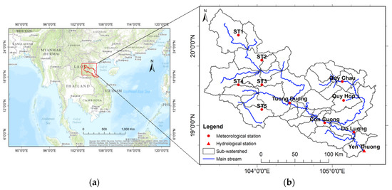Geographic location of the entire Ca River Watershed in (a) Southeast Asiaand; (b) the Upper Ca River Watershed (UCRW).