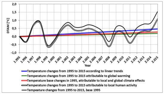 Figure 18 shows, as a summary, how the temperature change accumulates over time in the studied period of 20 years, according to the interpretations that are presented in this study.