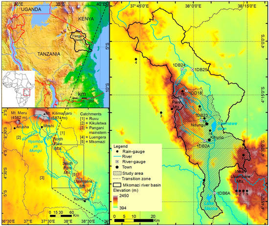 - PBWO; IUCN. Pangani River System; State of the Basin Report; PWBO: Moshi, Tanzania; IUCN Eastern Africa Regional Program: Nairobi, Kenya, 2007. [Google Scholar]
