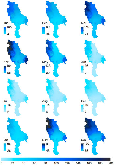 - Ninyerola, M.; Pons, X.; Roure, J.M. Monthly precipitation mapping of the Iberian Peninsula using spatial interpolation tools implemented in a Geographic Information System. Theor. Appl. Climatol. 2007, 89, 195–209. [Google Scholar] [CrossRef]