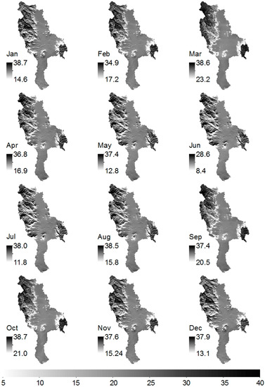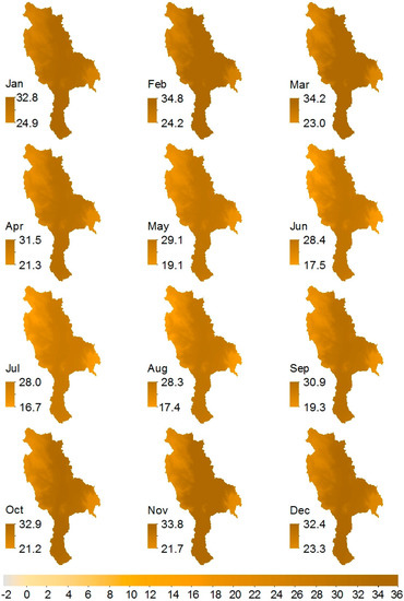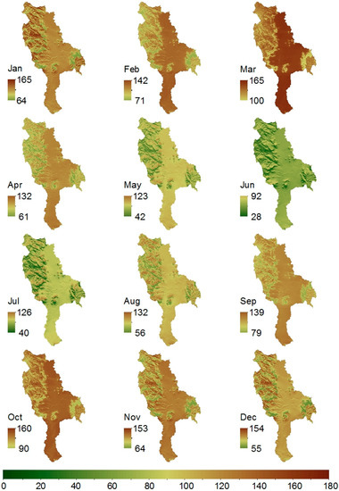 - Mitchell, T.D.; Jones, P.D. An Improved Method of Constructing a Database of Monthly Climate Observations and Associated High-Resolution Grids. Int. J. Climatol. 2005, 25, 693–712. [Google Scholar] [CrossRef]