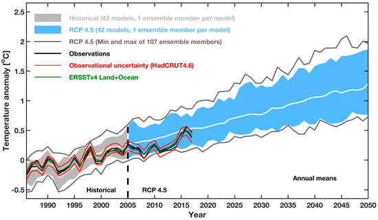 - Fyfe, J.; Gillett, N.P. Recent observed and simulated warming. Nat. Clim. Chang. 2014, 4, 150–151. [Google Scholar] [CrossRef]