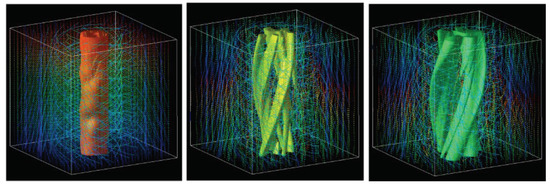 - Nolan, D.S.; Farrell, B.F. The Structure and Dynamics of Tornado-Like Vortices. J. Atmos. Sci. 1999, 56, 2908–2936. [Google Scholar] [CrossRef]