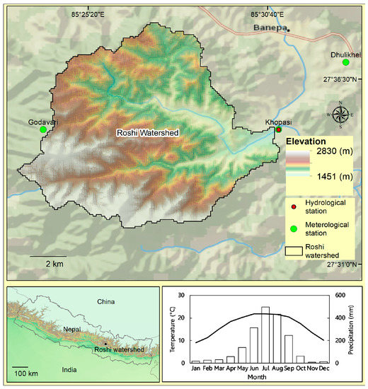 - DWIDP. Hydrological Study and Data Collection of Rosi River Catchment; A Technical Report of Department of Water Induced Disaster Prevention; Government of Nepal and Recham Consulting Pvt Ltd.: Kathmandu, Nepal, 2011.