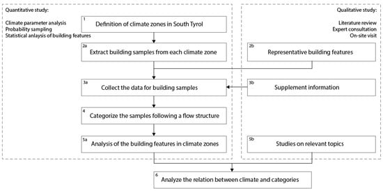 The results were interpreted with a qualitative study of South Tyrolean historic buildings, climate conditions, historic and social–economic events which influenced building customs, etc. (step 5b). By tracing the development of historic buildings, the relationship between climate and building categories was analyzed (step 6, Figure 2).