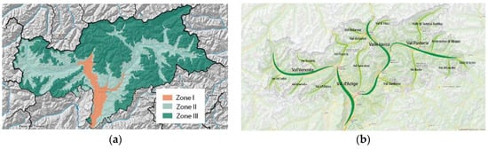 (a) Climate zones in South Tyrol; (b) main valleys in South Tyrol.