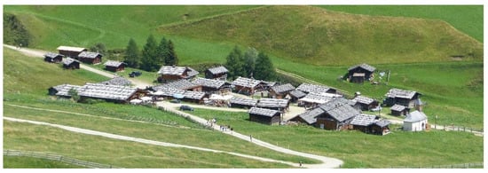 Nature and culture both lead to farm function differentiation. Fruit, viticulture, and crop farming require the warm climate of the valley or on the south-facing slopes of the mountains, while the high Alpine pastures are suitable for grazing and dairy farming. Although the climate type determines the optimum land use, the actual use of the land depends more on the farmer’s responses to economic opportunities [57]. Notably, people living at different altitudes engaged in both valley cultivation and mountain grazing, but with a different focus. This combined cultivation has a long history. Dating back to the Bronze Age, the transhumance system was found in South Tyrol [58]. For the settlements at low altitude, the function of dairy farming was placed on the mountain far away from the settlements. The stables and mountain huts were temporarily used in summer as a collective property.