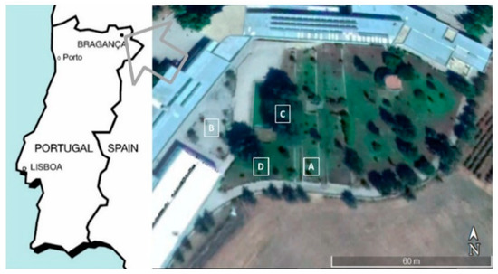 The study area is located in the city of Bragança (41°44′ N, 6°48′ W, 690 m above a.m.s.l.) in the Northeast of Portugal. The structured experiment took place in a garden inside a University Campus (Instituto Politécnico de Bragança).