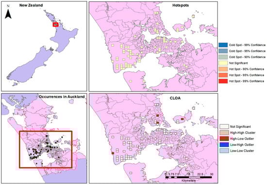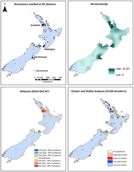- Ord, J.K.; Getis, A. Local Spatial Autocorrelation Statistics: Distributional Issues and an Application. Geogr. Anal. 1995, 27, 286–306. [Google Scholar] [CrossRef]