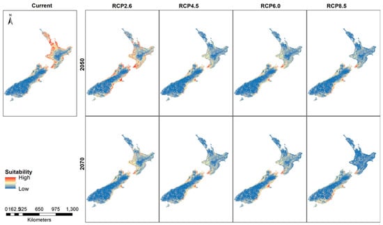 - Khadka, K.K.; James, D.A. Modeling and Mapping the Current and Future Climatic-Niche of Endangered Himalayan Musk Deer. Ecol. Inform. 2017, 40, 1–7. [Google Scholar] [CrossRef]