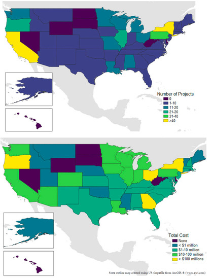 The projects in the dataset and their characteristics were not uniformly geographically distributed. As an example, by state,