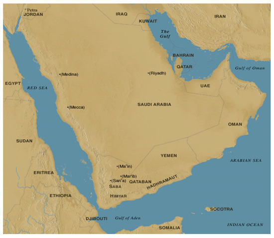 The data used in this study include the stratospheric temperature at 50 hPa (LST), zonal wind at 50 hPa, and 2 m surface air temperature (ST) for the wintertime (from December to February) in the period 1951–2016. These data were obtained from the National Centers for Environmental Prediction (NCEP) and the National Center for Atmospheric Research (NCAR) reanalysis product [29,30]. Quasi-biennial oscillation (QBO) was calculated at the Physical Sciences Division (PSD-NCEP/NCAR) from the zonal average of the 30 hPa zonal wind at the equator. Sunspot number time series were obtained from SILSO, World Data Center—Sunspot Number and Long-Term Solar Observations, Royal Observatory of Belgium, (online Sunspot Number catalog: http://www.sidc.be/SILSO/, ‘year(s)-of-data’). The borders of the Arabian Peninsula are well-established [31]. Arabian Peninsula: a peninsula between the Red Sea and the Arabian Gulf. Peninsular region: southwest Asia with its offshore islands, covering about 2.6 million km2. It is located in the subtropical belt between 12° N, 35° N, 30° E, and 60° E, and connects Asia with Africa (Figure 1).