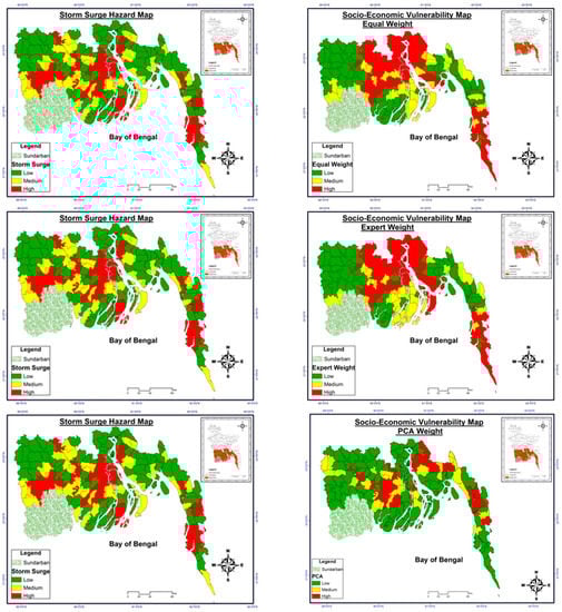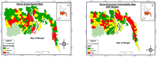 | Social dependence | Children and elders are the most vulnerable groups in hazards [34] Children, especially in the youngest age groups, cannot protect themselves during disasters like storm surges [35] because they lack the necessary resources, knowledge, or life experiences to effectively cope with the situation [36]. | Data source: BBS, 2011. Data unit: Percentage of summation of women, children under the age of 18, and elderly people to the total upazila population. | |