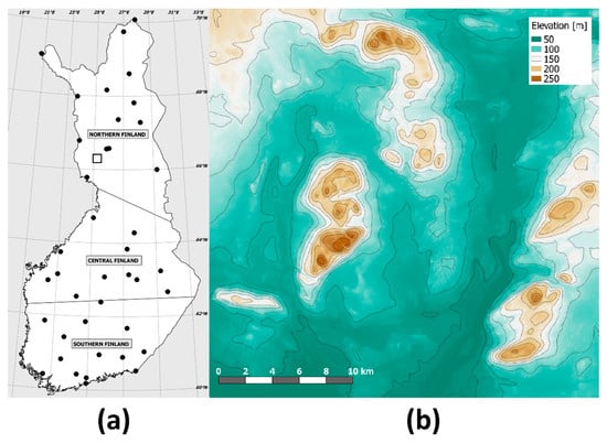Also, one smaller area (30 × 30 km) from northern Finland (