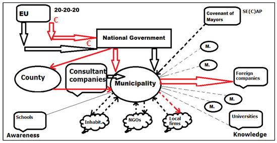According to both the literature [50,51,52] and national strategic documents [53], public sector examples should be triggering factors for private persons. Respondents claimed that this is an overstatement, as the majority of local persons are not rich enough to implement any such projects. This may explain the low level of climate and energy governance and the poor utilization of local specialties. Local actors cannot play much of a role in the planning and the implementation of such programs. Usually, there are no municipality-level climate or RES strategies, and, in addition, former fruitful voluntary micro-regional co-operation was weakened by central political will. Instead of a mutually advantageous collaborative and autonomous attitude, a troubled atmosphere was created through national legislation and centrally disposed EU subsidies. This centralized contesting and politics-driven landscape made external political and intellectual groups dominant over local interests. The level of governance is generally low; consequently, local specialties are rarely integrated. The darkest side of the picture is the existence of an opaque network of advisory companies commissioning a remarkable portion of EU finances.