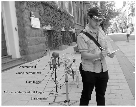 Structured according to universal thermal comfort standards [46,47], a questionnaire survey during 9 days elicited information about people’s thermal perceptions including wind comfort perceptions. Three scales used include “Bedford preference” (i.e., weaker, no change and stronger), “thermal sensation” (i.e., hot, warm, moderately warm, neutral, slightly cool, moderately cool, cold), and “personal acceptability” (i.e., acceptable and unacceptable). As stated before, the study population consisted of university students, staff and others using these spaces at the time of the survey. The questionnaire surveys were conducted close to the portable device (TESTO IAQ probe), while this device was recording surrounding micrometeorological conditions with five-minute intervals. On average, the questionnaire surveys took less than five minutes to complete, and participants had been briefed prior to taking surveys about the objectives of the study.