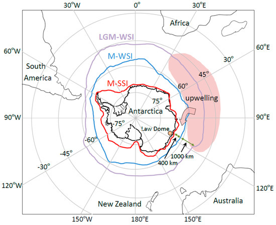 - Buizert, C.; Sigl, M.; Severi, M.; Markle, B.R.; Wettstein, J.J.; McConnell, J.R.; Pedro, J.B.; Sodemann, H.; Goto-Azuma, K.; Kawamura, K.; et al. Abrupt ice-age shifts in southern westerly winds and Antarctic climate forced from the north. Nature 2018, 563, 681–685. [Google Scholar] [CrossRef] [PubMed]
