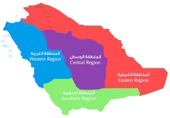 For building and energy modelling purposes, several studies have classified regions in the Kingdom according to air temperature, relative humidity, wind speed and solar radiation. Between three to five distinct climatic zones have been identified, ranging from hot dry desert conditions to hot humid maritime areas and cooler mountain zones in the south [,,,].