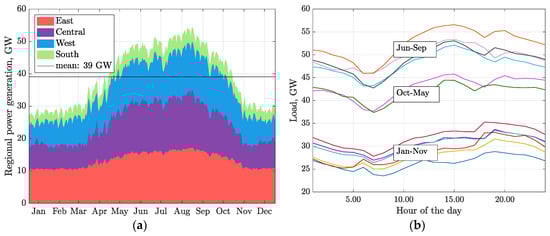 Hourly electricity data was available for 2011–2015, except for 2012. Electricity data includes demand from all sources, the main groupings being buildings and industrial uses. SEC is the largest provider of electricity in the Kingdom, with a share of 66% of Saudi Arabia’s total electricity capacity []. The SEC data excludes some independent electricity power generation produced by some large industrial users, such as cement plants and refineries. The SEC data also relates to the total amount of primary generation before transmission, distribution and other losses. For example, according to Enerdata [] in 2018 the total primary electricity generation was 351 TWh while total final electricity consumption was 285 TWh, implying losses of 19%.