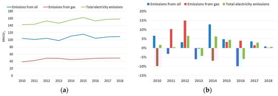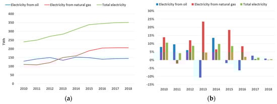 Annual data on electricity fuel inputs and CO2 emissions from electricity were obtained from []. The two main fuel inputs are natural gas and oil-based liquid fuels. Oil-based fuels include crude oil, heavy fuel oil, diesel as well as some other oil products. While the dynamics of these individual fuels can be assessed using monthly data from the Joint Oil Data Initiative (JODI) it was beyond the scope of this paper to evaluate these trends. This would be a useful exercise for future research on the Kingdom’s changing CO2 emissions.