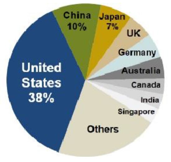 A data center (DC) is a processing infrastructure where computer systems of companies and/or organizations are gathered. It is an environment that has a large infrastructure where digital systems can communicate over a network, storing all the information needed by companies. All data transmitted are stored in the networks or generated in DC’s. Thus, there is a physical infrastructure behind every solution used in computer systems. With the volume of use, storage, and technological evolution of the systems, platforms and services that are offered using networks, the available cloud computing services have increased. Therefore, the number of servers has increased so that the systems can carry out their proper operation and users obtain responses to their requests in a timely manner [1]. Continuous growth occurs, with the companies’ revenues growing on average 24% per year and their investments more than 38%; most of it is used for the construction and equipment of DCs [2]. As shown in Figure 1, 40% of the world’s DC are located in the United States of America (USA). The highest growth rates have occurred in Europe and the Asia-Pacific. China, Japan, United Kingdom, Germany and Australia now account for 32% of the total [2].
