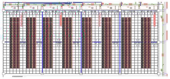 For comparison, a high density DC of 414.72 m² as shown in Figure 5 was used with the heat dissipation equipment (347.3 kW of sensitive heat, that is, 0.84 kW/m²) added to the internal thermal load of 48 kW, composed of driving and lighting (8 kW), people and others (40 kW of Nobreak and others losses).