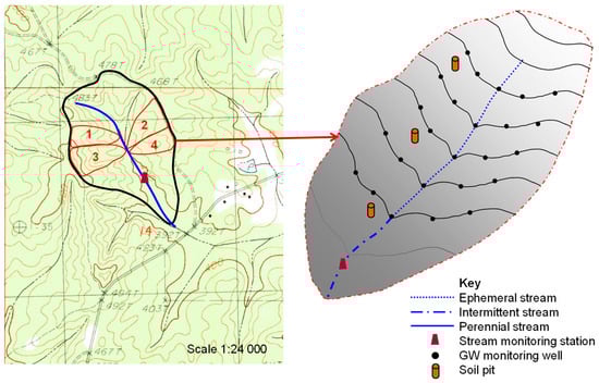 - Choi, B.; Hatten, J.A.; Dewey, J.C.; Otsuki, K.; Cha, D. Effect of timber harvesting on stormflow characteristics in headwater streams of managed, forested watersheds in the Upper Gulf Coastal Plain of Mississippi. J. Fac. Agric. Kyushu Univ. 2013, 58, 395–402. [Google Scholar]