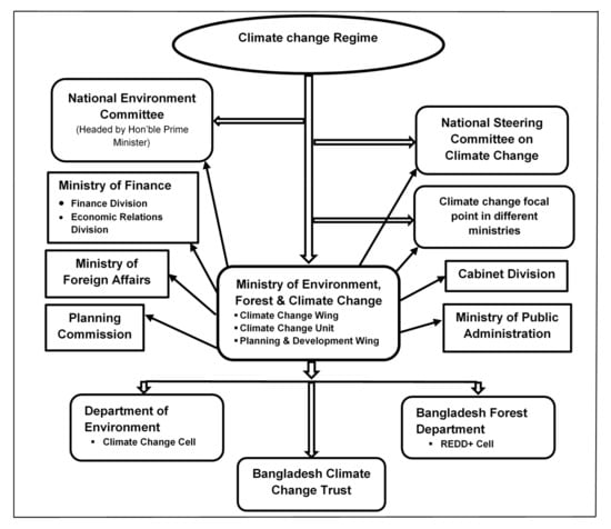- Rahman, M.S.; Giessen, L. The power of public bureaucracies: Forest related climate change policies in Bangladesh (1992–2014). Clim. Policy 2017, 17, 915–935. [Google Scholar] [CrossRef]
