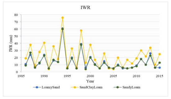 Based on the simulated IWR, in some years little supplemental irrigation was required, while many other growing periods were highly different. This means that during drier years, the crop requires more water. The results show that for rainfed agriculture, the irrigation requirements vary and heavily dependent on rainfall amounts.