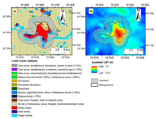 Example of CCI-LC and LST use in the urban study by [73].