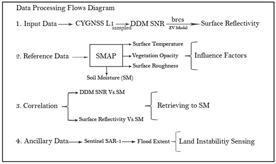 - Carreno-Luengo, H.; Luzi, G.; Crosetto, M. Sensitivity of CyGNSS bistatic reflectivity and SMAP microwave radiometry brightness temperature to geophysical parameters over land surfaces. IEEE J. Sel. Top. Appl. Earth Obs. Remote Sens. 2019, 12, 107–122. [Google Scholar] [CrossRef]