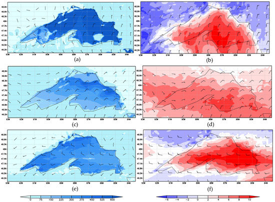 - Shi, Q.; Xue, P. Impact of Lake Surface Temperature Variations on Lake Effect Snow Over the Great Lakes Region. J. Geophys. Res. Atmos. 2019, 124, 12553–12567. [Google Scholar] [CrossRef]