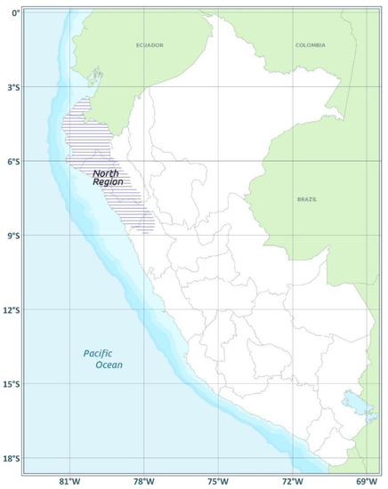 The study area corresponds to the north-west territorial portion of Peru, where the coastal ENSO occurred during the months of January, February, and March of 2017 (Figure 1). During these months, the strong warming that developed in the Eastern Tropical Pacific Ocean (abnormal warmth) produced unusually intense rain storms in the area, compared to the 1997–1998 and 1982–1983 ENSO events [25].