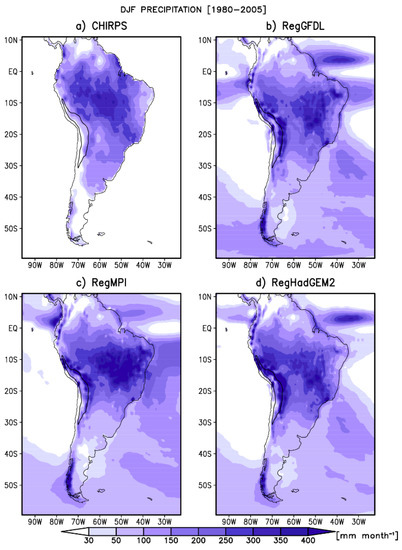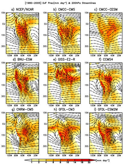 - Vasconcellos, F.C.; Deng, Y.; Zhang, H.; Martin, G. Austral summer precipitation biases over tropical South America in five CMIP5 earth system models. Int. J. Climatol. 2020. [Google Scholar] [CrossRef]