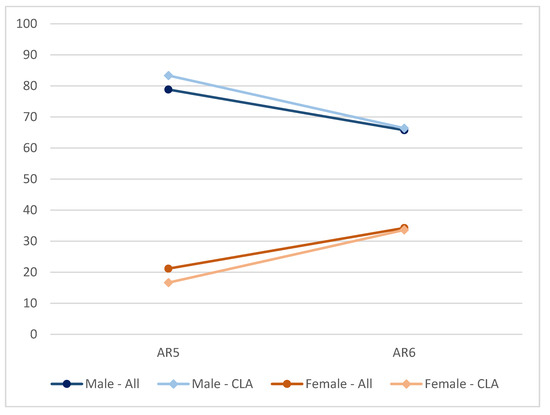 Gender diversity between AR5 and AR6 (%). Source: Authors’ own data.