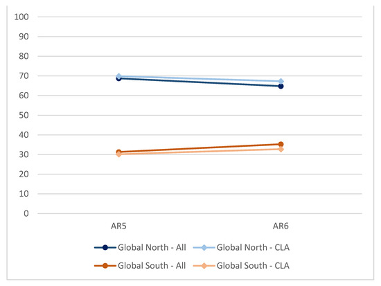 Global North/South diversity between AR5 and AR6 (%). Source: Authors’ own data.