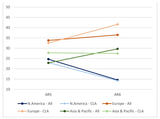 Regional diversity between AR5 and AR6 (%) (Part 1). Source: Authors’ own data.
