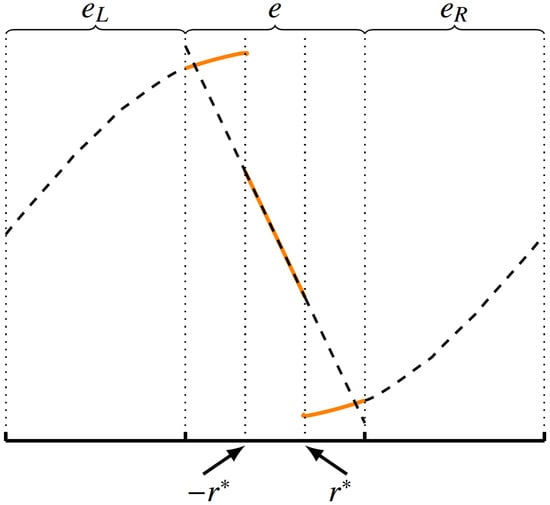 Assume that the approximate solutions for the current element and its left and right neighbors are denoted as , and , respectively. Then, we have