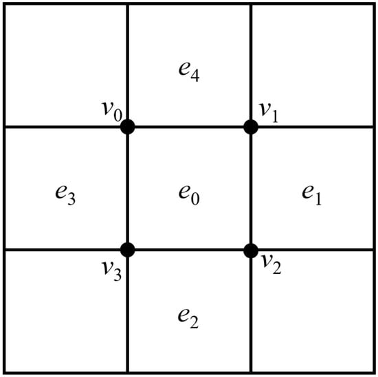 The conservation law is discretized by the high-order flux reconstruction (FR) scheme. Considering a one-dimensional case for simplicity, first, the computational domain is divided into non-overlapping elements . A degree P polynomial defined on a set of points (solution points, SPs) is used to represent the solution and the flux in the element. In this paper, the SPs were located at the Legendre–Gauss points. By adopting solution points, the 1-D Lagrange basis polynomial of degree is