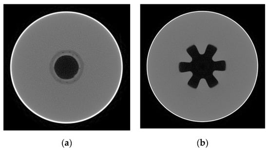 Partial CT images of NAWC No. 6 grain: (a) tube grain; (b) star grain.